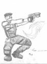 Hey, ARanck2020 sent another couple of Night's Edge sketches to share with everyone. The first is a drawing of the IMI TAR-21 assault rifle, and the second is another sketch of a CyTek shock trooper, this one armed with his idea for a grenade launcher concept. Well done, man, keep up the good work!